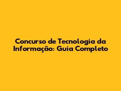 Concurso De Tecnologia Da Informação: Guia Completo