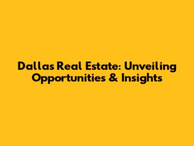 Dallas Real Estate: Unveiling Opportunities & Insights