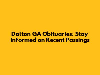 Finding Dalton GA obituaries and offering condolences is an important way to honor the deceased and support their families. Use the resources and tips outlined in this article to stay informed and connected to your community. Your thoughtfulness and support can provide comfort during a challenging time. By staying informed, offering condolences, and actively supporting grieving families, you contribute to a compassionate and connected community in Dalton, GA.
