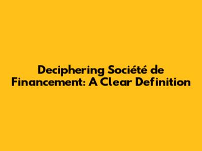 Deciphering Société De Financement: A Clear Definition