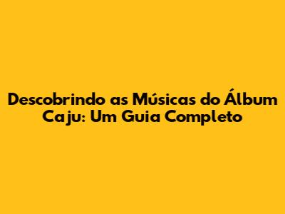 Descubra Quantas Músicas Tem O Álbum Caju