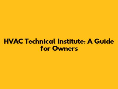 HVAC Technical Institute: A Guide For Owners