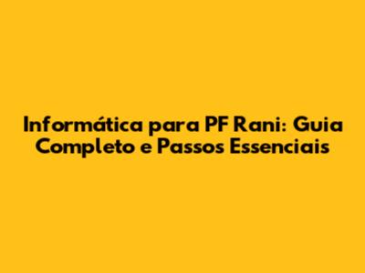 Informatica Para PF Rani: Guia Completo E Passos Essenciais