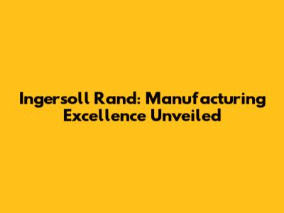 Ingersoll Rand: Manufacturing Excellence Unveiled