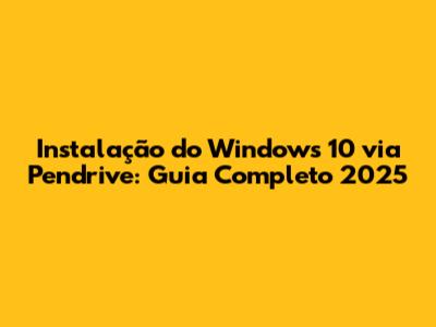 Instalação Do Windows 10 Via Pendrive: Guia Completo 2025