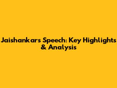 Jaishankar's Speech: Key Highlights & Analysis