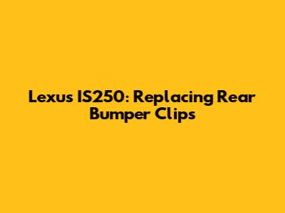 By following these steps, you can successfully replace the rear bumper clips on your Lexus IS250 and restore the appearance and integrity of your vehicle.