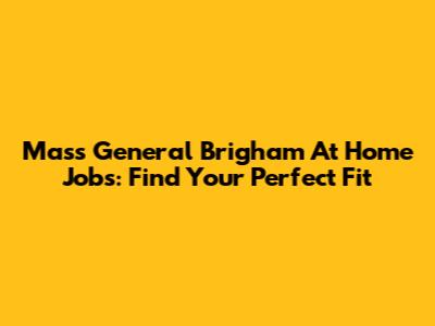 Mass General Brigham At Home Jobs: Find Your Perfect Fit