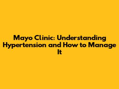 Mayo Clinic: Understanding Hypertension And How To Manage It