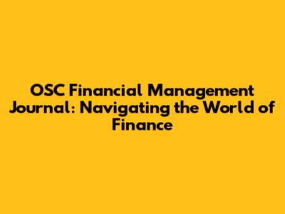 By regularly reading the OSC Financial Management Journal, you can enhance your financial knowledge, improve your decision-making skills, and increase your chances of achieving your financial goals.