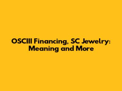 OSCIII Financing, SC Jewelry: Meaning And More