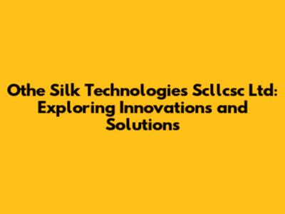 Let's dive into the world of Othe Silk Technologies Scllcsc Ltd, a company that's been making waves with its innovative approaches and technological solutions. In this article, we'll break down what makes Othe Silk Technologies stand out, exploring its various facets and contributions to the tech landscape. We will discuss what they do, their impact, and why they are noteworthy in today's fast-evolving tech world.