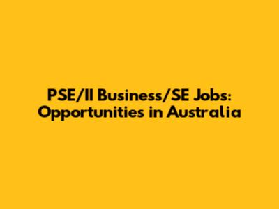 PSE/II Business/SE Jobs: Opportunities In Australia