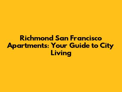 Finding the perfect apartment in Richmond, San Francisco, can be an exciting yet overwhelming experience. With its vibrant culture, diverse neighborhoods, and stunning views, Richmond offers a unique blend of urban living and community charm. This guide will walk you through everything you need to know to navigate the Richmond San Francisco apartments market, ensuring you find a place you'll love to call home.