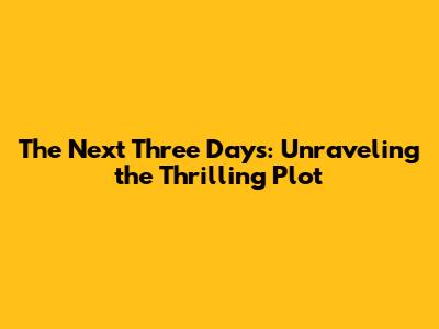 The Next Three Days: A Gripping Storyline Explained