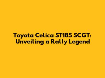Toyota Celica ST185 SCGT: A Comprehensive Guide