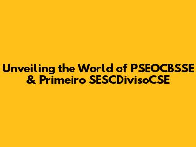Unveiling The World Of PSEOCBSSE & Primeiro SESCDivisoCSE