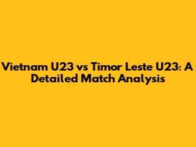 Vietnam U23 Vs Timor Leste U23: Match Analysis & Insights